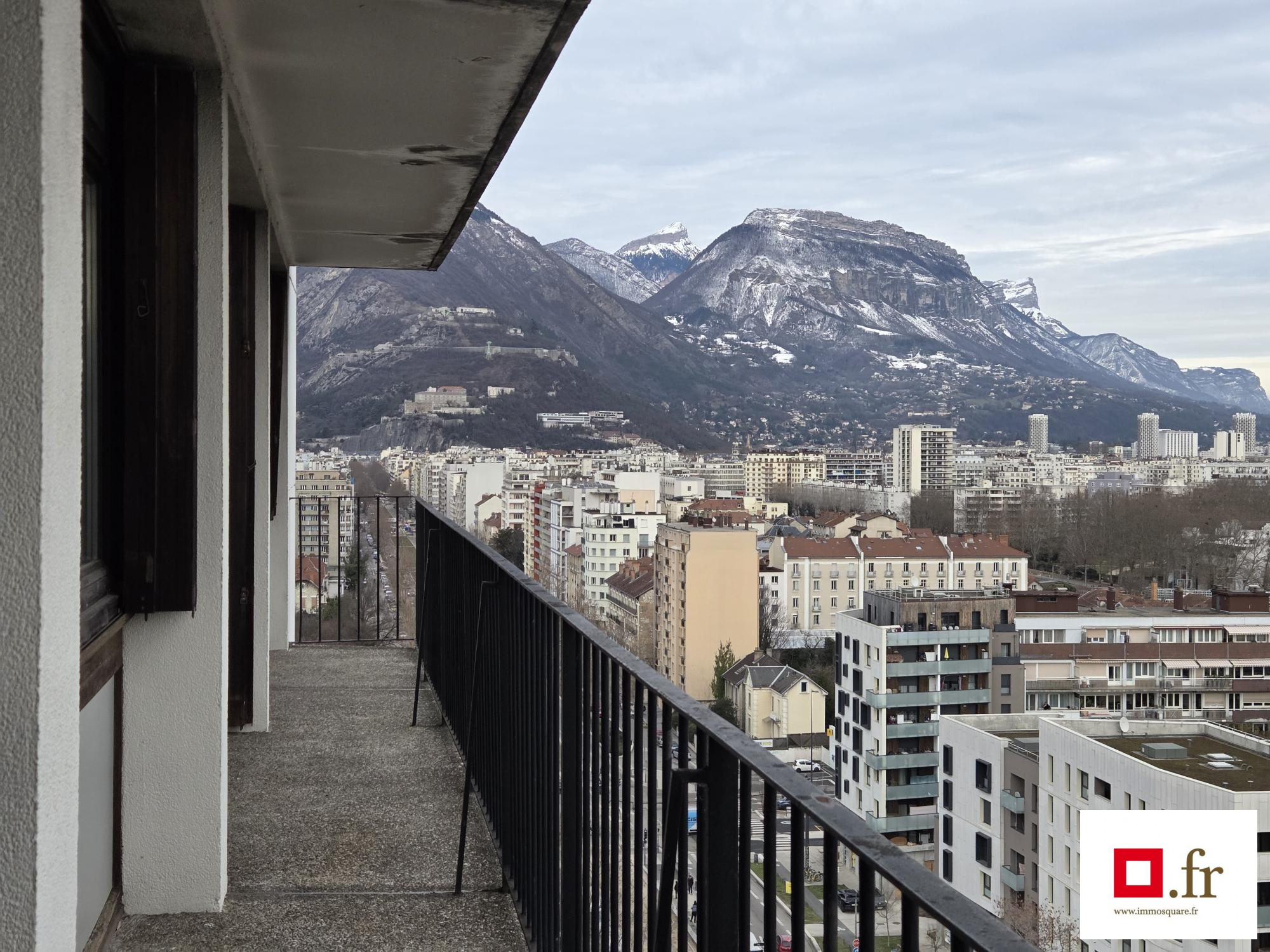 Il propose une vue panoramique, au 14ème étage avec 2 ascenseurs, Exposition Est-Nord. Il se compose d'un séjour TRES LUMINEUX, d'une cuisine séparée meublée avec accès petite terrasse, d'une entrée avec placard et dressing, de 3 chambres vue Belledonne, d'une salle de bains et wc indépendant. Accès PMR. Fenêtres en pvc double vitrage de partout, chauffage collectif urbain et chauffe-eau électrique neuf. 2 ascenseurs - cave et local à vélos.